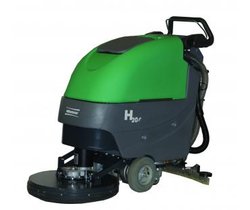 - Scrubs with two counter-rotating cylindrical brushes and picks up the dirty water in one pass